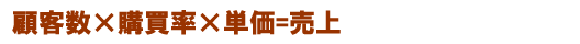 ECサイト(オンラインショップ)での売り上げを考える場合、以下のような公式が成り立ちます。